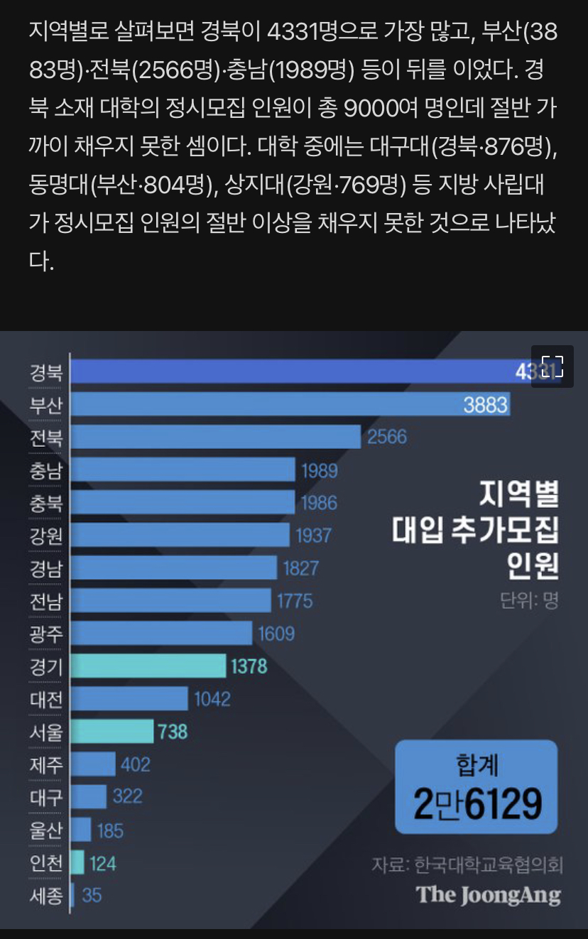 대학중에는 대구대, 동명대, 상지대등 지방 사립대가 정시모집 인원의 절반 이상을