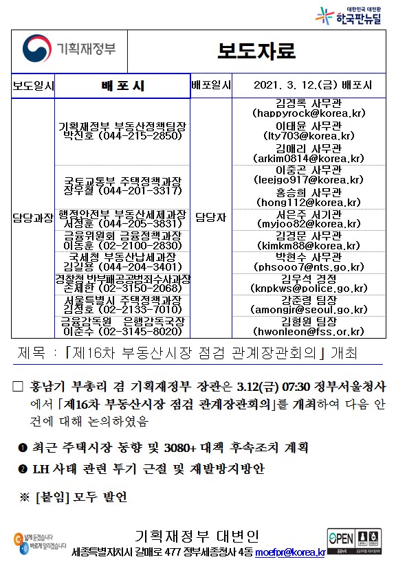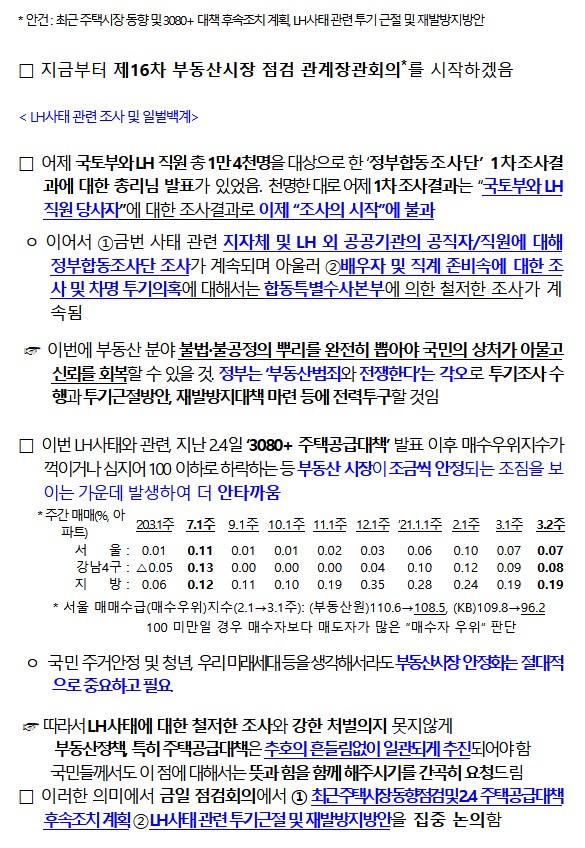 [부동산] 제16차 부동산시장 점검 관계장관회의 내용
