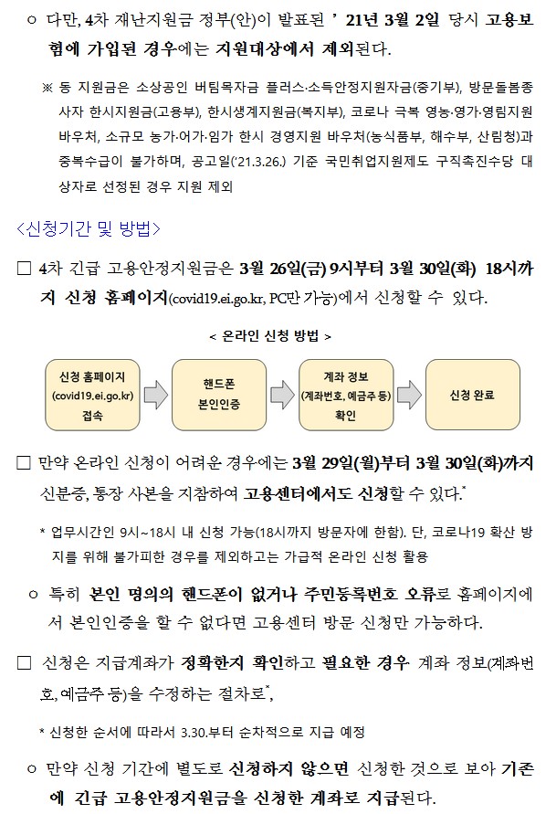특수형태근로종사자·프리랜서의 생계안정을 위한 「4차 긴급 고용안정지원금」 사업 시행 공고