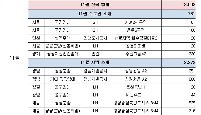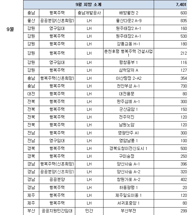 - 특히, 신혼희망타운은 의왕고천(580호), 울산다운2(835호)을 포함한 11곳에서 총 4,775호를 공급하는 등 분양이 본격화된다.