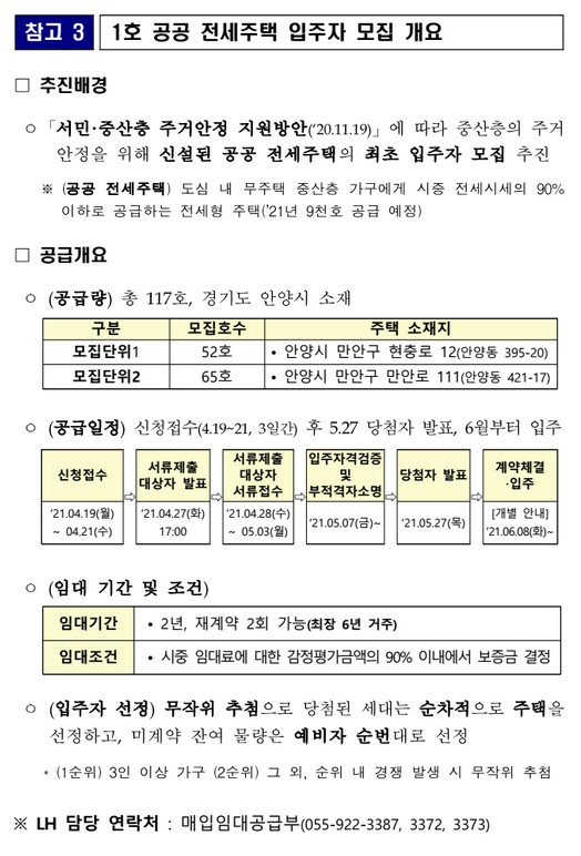 - 올해는 서울 3천호, 경기·인천 3.5천호 등 총 9천호를 매입하고 준공되는 대로 입주자를 모집할 계획이다.