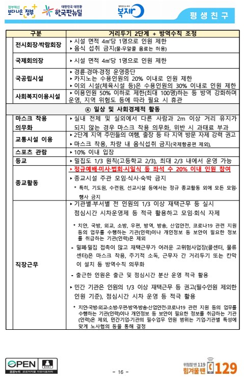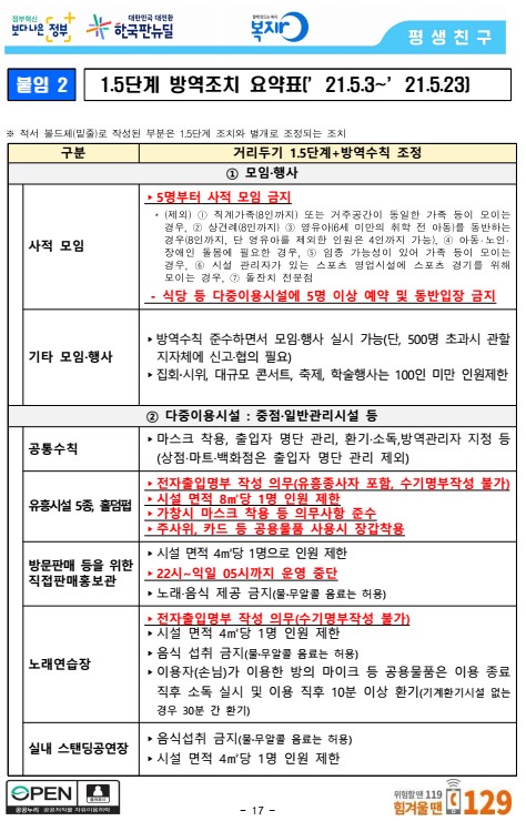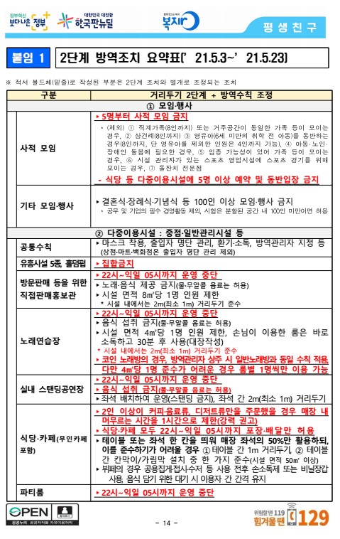 2단계 방역조치 요약표 (21.5.3 ~ 21.5.23)