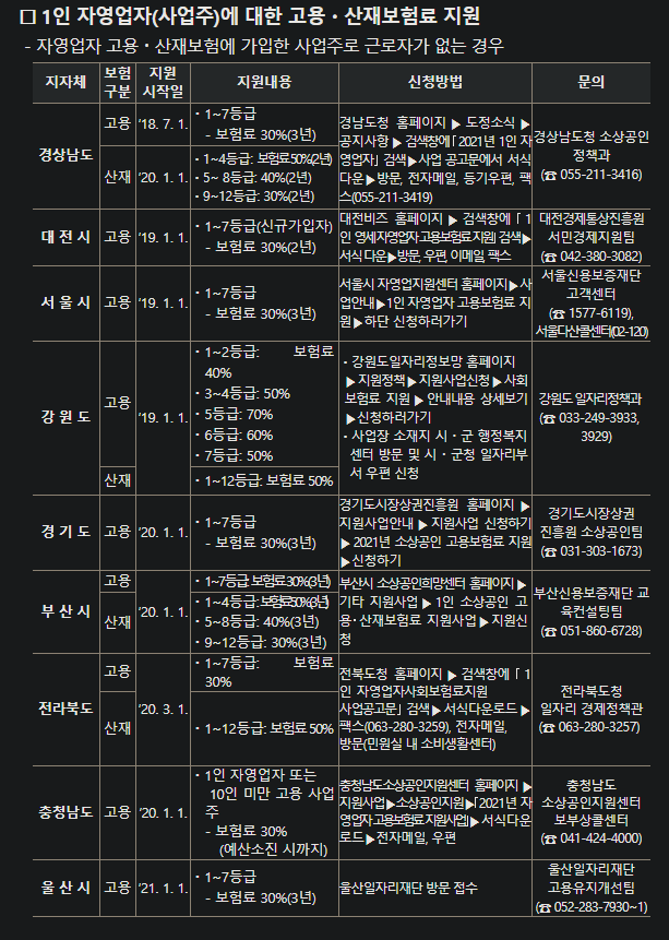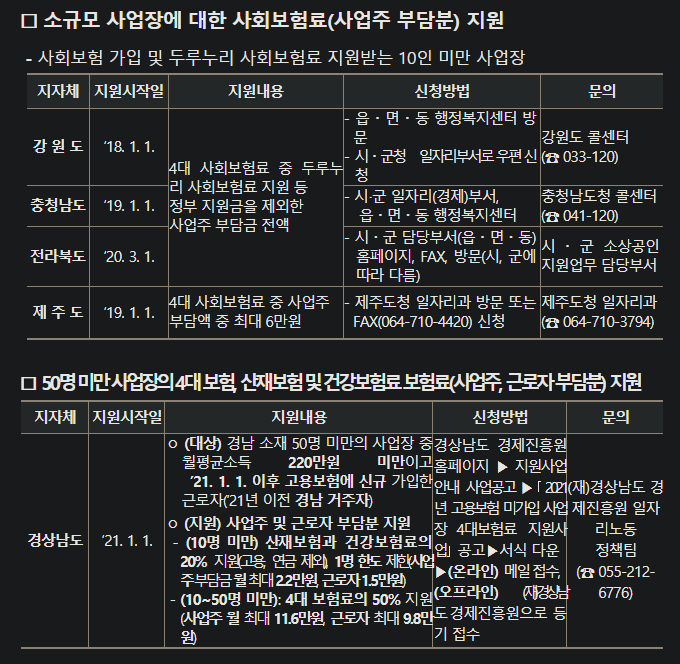 지방자치단체 사회보험료 지원사업 현황