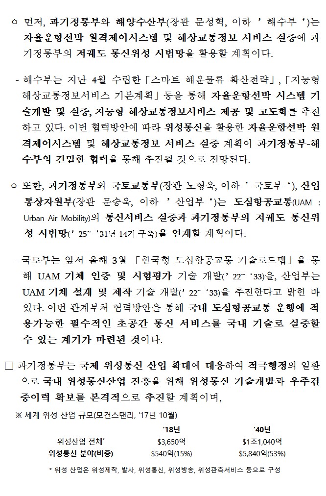 [ 과기정통부는 해수부, 국토부, 산업부 등과 해상교통, 도심항공교통 분야
