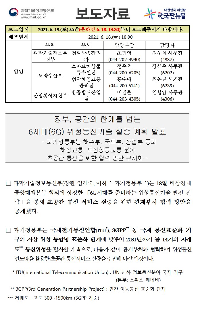 6세대(6G) 위성통신기술 실증계획 발표 6세대(6G) 위성통신기술 실증계획 발표 6세대(6G) 위성통신기술 실증계획 발표